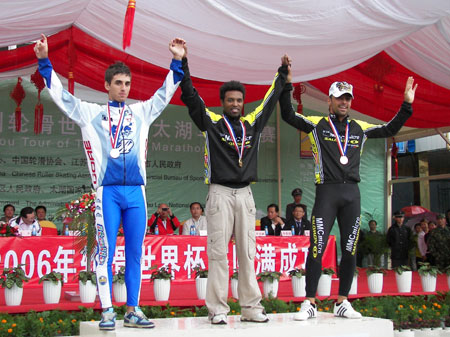 北京时间9月12日上午,2006年“好家庭” 轮滑世界杯环太湖马拉松赛在美丽的太湖湖畔举行,虽然天气一直下雨,仍没能阻止来自全国各地的共1200多名轮滑爱好者参加马拉松赛的热情。 比赛分为8公里业余组、21公里半程马拉松和42公里全程马拉松赛,这种比赛安排极大的调动了参赛选手的热情,参赛选手年龄不等,上至60多岁的老人,下至4岁的孩童,都在雨中参与了这项比赛活动。和专业选手一起参赛,给了选手极大的信心。最终来自所罗门麦可队的诺玛尼.皮尔.大卫和所罗门速队的巴巴里.娜塔里分获男女组冠军。 在专业组全程马拉松比赛中,所罗门麦可队的诺玛尼.皮尔.大卫以01:06:31.587的成绩获得男子组冠军,所罗门速队选手巴巴里.娜塔里以01:21:44.424的成绩获得女子组冠军,武警利群轮滑一队选手马琳获得第14名,江苏省奥得赛轮滑队选手郭丹获得第六名,他们两人取得了所有参赛的中国选手的最好成绩。在青年比赛中,中国前卫队选手王鹏和江苏省奥得赛轮滑队选手林小煦分获男女冠军。半程马拉松赛的冠军则被北戴河米高轮滑一队的穆森和武警利群轮滑一队的王思冉获得。 本次轮滑世界杯是继2005年举办世界锦标赛后,苏州又一次举办国际赛事,根据和轮滑世界杯组委会的协议,苏州将连续三年承办该项赛事。这为苏州致力于打造“轮滑之都”的目标更近了一步。 通过本次环太湖轮滑世界杯马拉松赛,中国选手和国际优秀的轮滑运动员有了一个同场竞技的机会,在技术和战术方面得到了宝贵的经验。WIC技术总监克里斯托弗.奥多尔在赛后表示,中国选手这几年表现非常令人吃惊,他们进步神速,但在具体的技术环节上还有待加强,希望能在不久的将来能有机会对中国选手进行指导,有理由相信,中国培养出自己的世界冠军的梦想不会遥远。(转自中国轮滑协会网站)