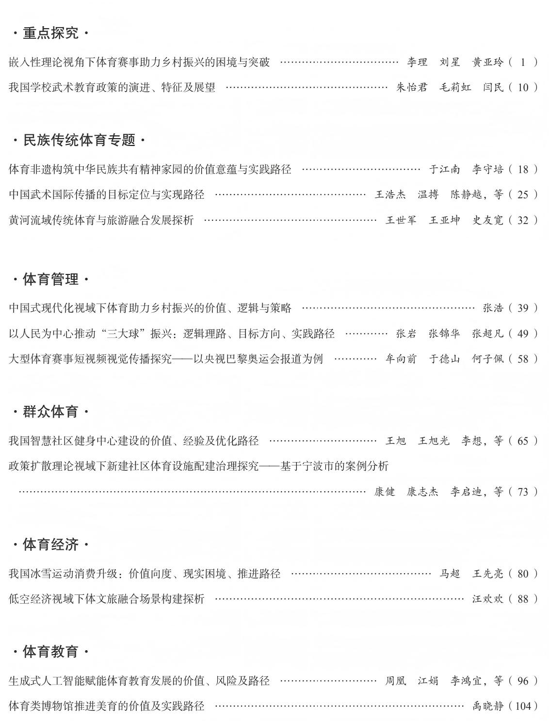2025年第 9 期《体育文化导刊》目次