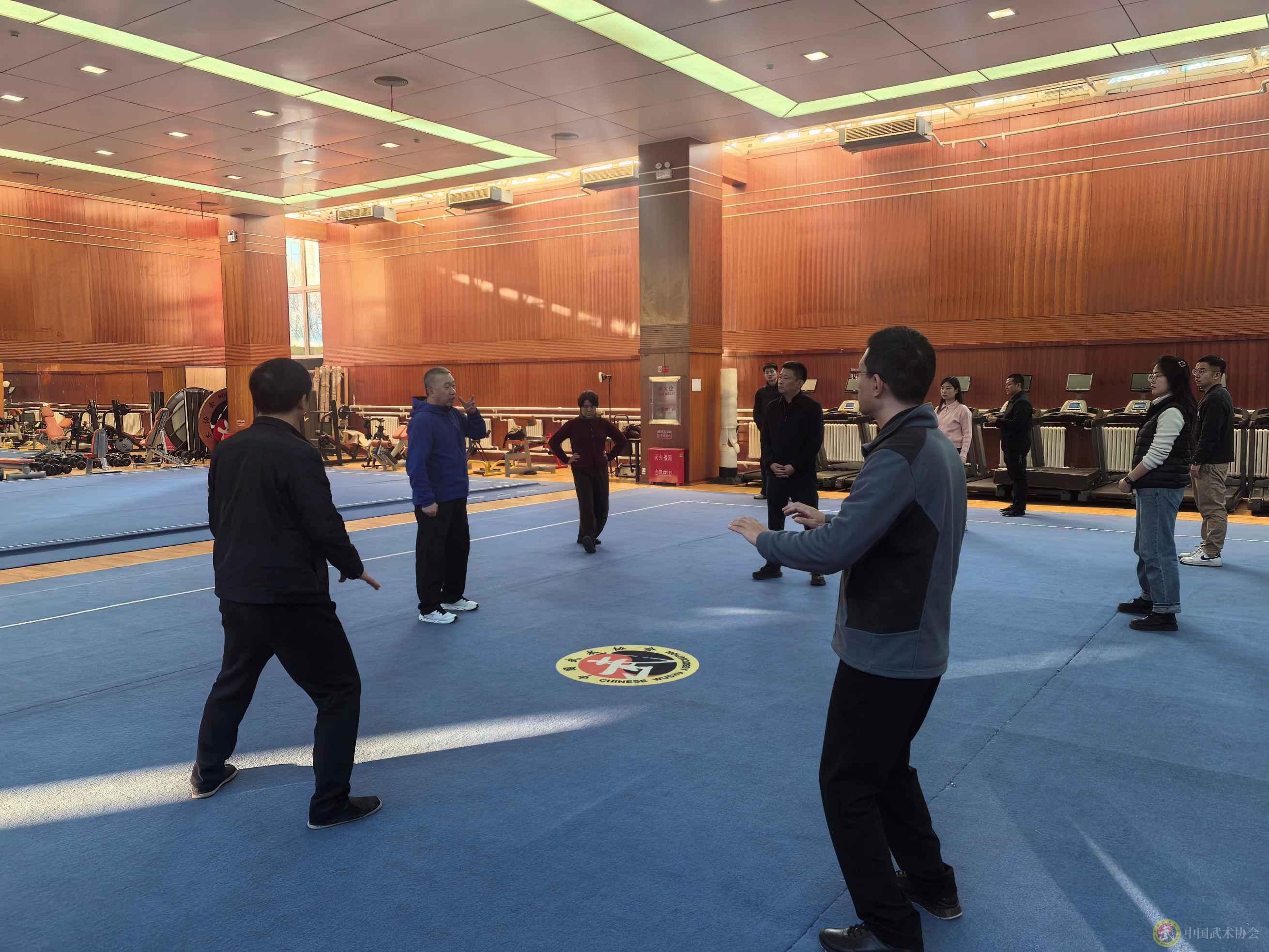 为丰富武术中心干部职工文化生活,提升身体素质,营造健康向上、团结和谐的工作氛围,2025年11月18日下午,武术中心工会在二层训练厅举行24式太极拳培训开班仪式。中心工会主席、副主任李永强致辞,中心副主任陈冲出席活动并全程参与学习,在京全体干部职工积极参加。