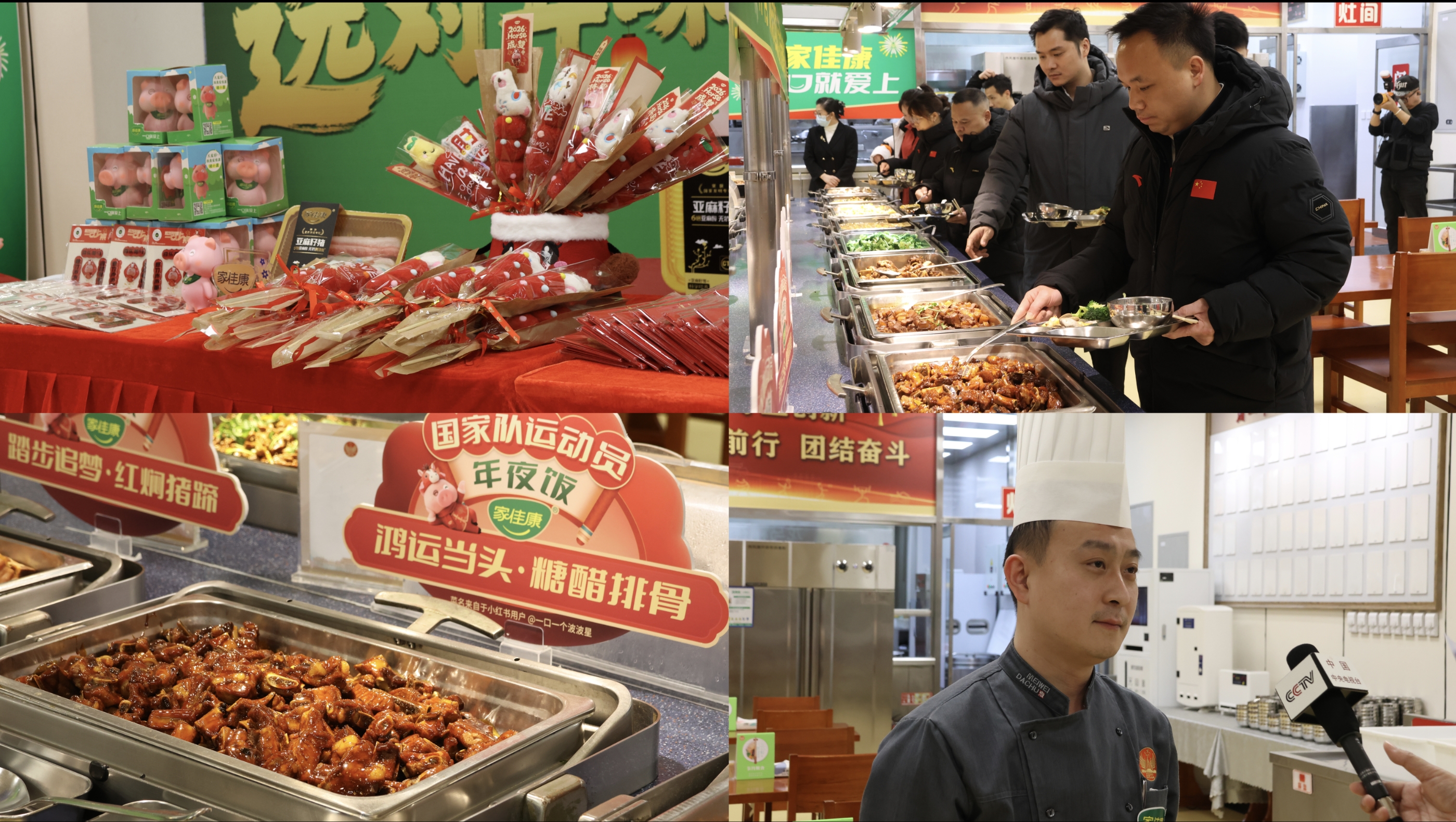 新年氛围日益浓郁,新春佳节即将来临。2026年2月10日,适逢中国传统节日小年,训练局与中粮家佳康携手在运动员餐厅举办年夜饭及系列迎春活动。来自游泳、花样游泳、体操、羽毛球、乒乓球、举重等多支国家队的500余名运动员积极参与了此次活动。