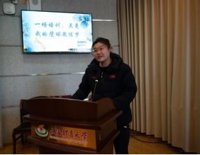 张玉蝶、李楠、杜鑫海三位学员代表分享了在学习期间各自的进阶之路与初心规划,畅谈从技术小白、爱好者到专业教练、从业者的进阶之路。学员代表们一致表示在教学中领悟到了统一教学与个性化指导结合的真谛,在实践教学中深刻体会到了“教练”二字的责任分量,也在运动训练中磨练出了专注力与坚韧品格。他们不约而同地表示,要将所学才能运用到基层教学,借助政策机遇与学校资源推广壁球运动,让体育精神在孩子们的心中,在社会的沃土中生根发芽,最终为专业队乃至国家队输送人才,言语之间满是收获与坚定。