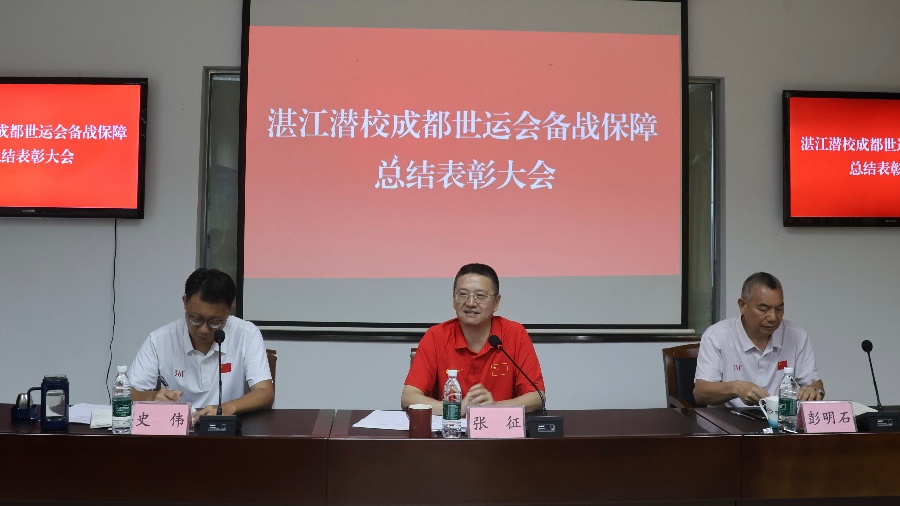 9月4日上午,湛江潜校召开成都世运会备战保障总结表彰大会。会议总结潜校成都世运会相关工作、表彰优秀教练复合团队与后勤保障团队,动员全校干部职工立足新起点,蓄势再出发,把备战保障过程中形成的优良作风、宝贵经验和创新方法转化为下一步建设一流训练基地、抓好项目推广普及的新动力,在体育强国建设中贡献更多潜校力量。