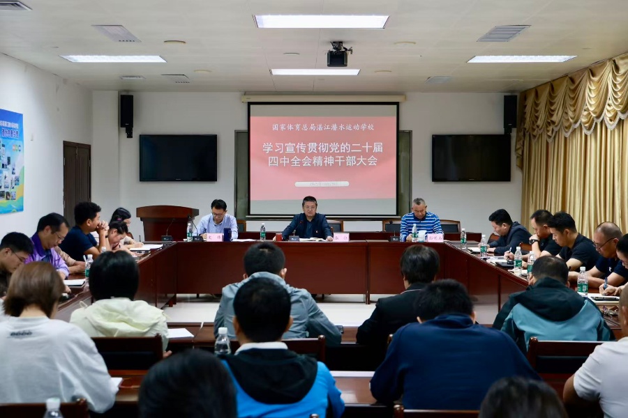 10月29日,湛江潜校召开学习宣传贯彻党的二十届四中全会精神干部大会,全校党员、干部参会。会议深入传达学习全会精神,结合潜校职能定位部署贯彻落实举措,推动全会精神在训练备战、赛事筹办、基地服务保障与科研一线等方面落地生根。
